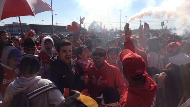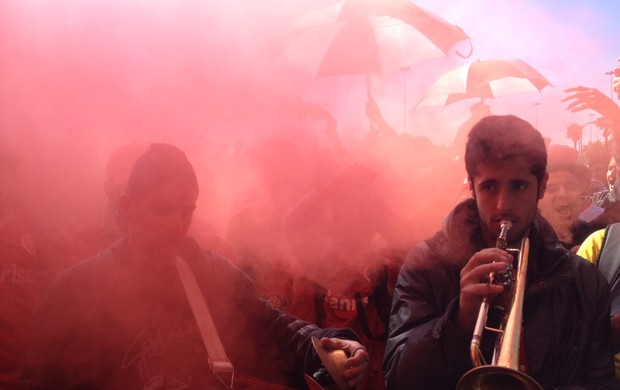 | Torcida colorada faz a festa na chegada do meia Alex (Foto: Tomás Hammes/globoesporte.com) |