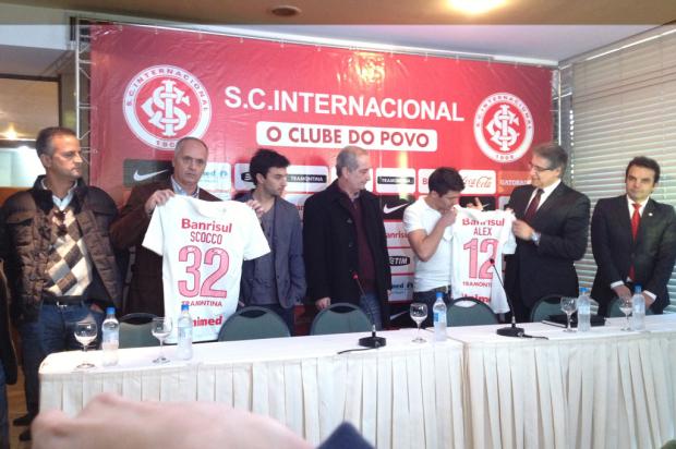 Alex e Scocco, os tão desejados reforços pela torcida colorada foram, na tarde desta sexta-feira, apresentados como novos jogadores do Inter. Entre sorrisos, apertos de mãos, discursos da diretoria e fotos, os dois jogadores concederam entrevista coletiva — a primeira de ambos na sua nova casa.