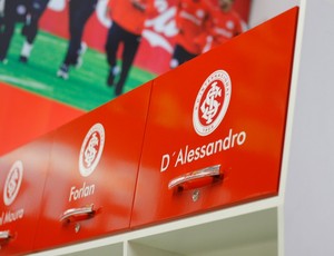 Na coloração vermelha (com adesivos removíveis), há armários reservados para cada atleta. Uma das sequências dos móveis conta com nomes de D’Ale, Diego Forlán, Leandro Damião, Rafael Moura e Otávio, lado a lado, por exemplo.