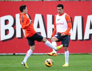| Caio e Damião treinaram normalmente no sábado (Foto: Alexandre Lops/Inter, Divulgação) |